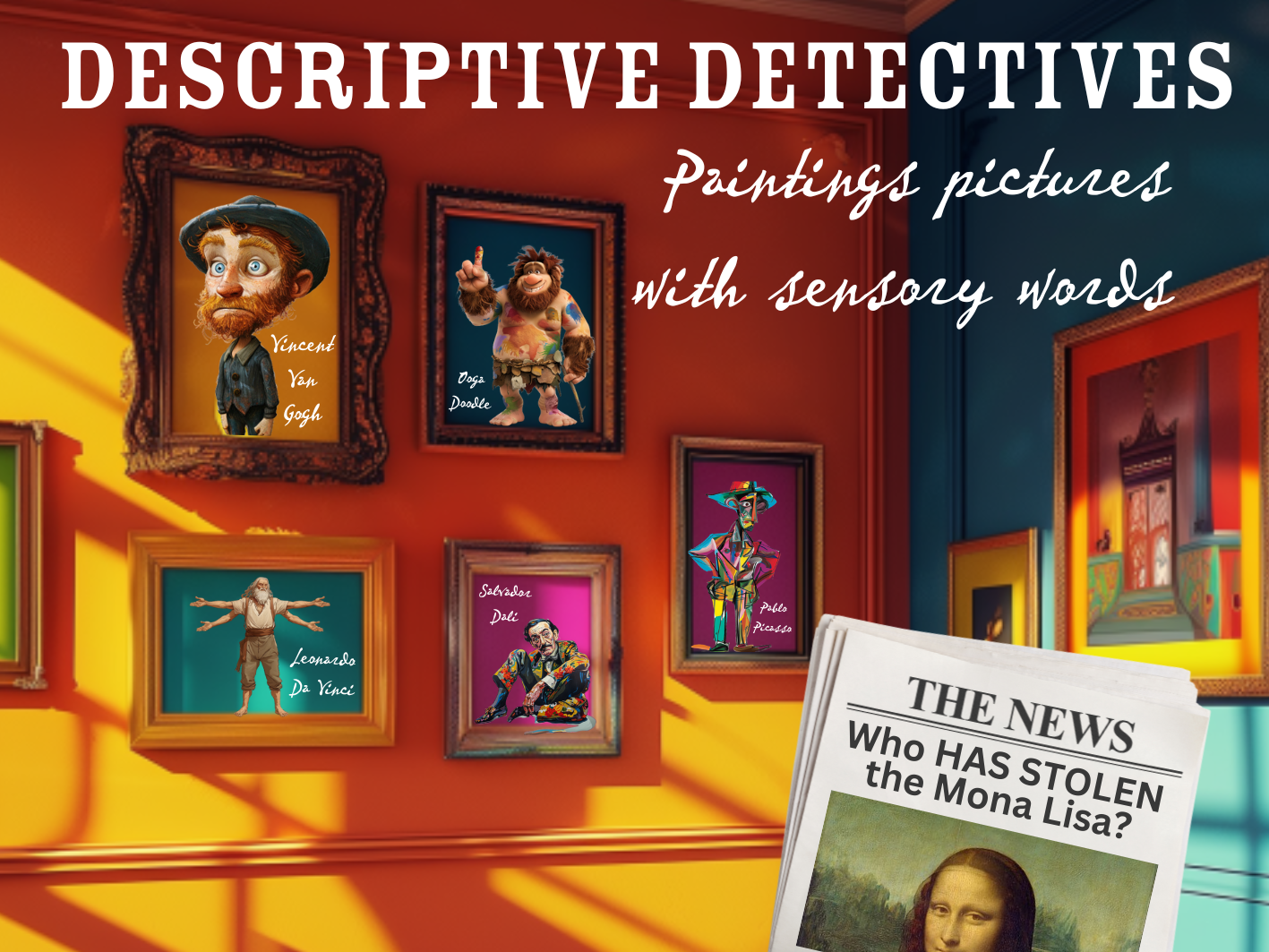 Step into a world of mystery and creativity as your child embarks on an exciting quest to solve the true story of the stolen Mona Lisa! In this vibrant art museum adventure, paintings come to life, and young detectives must use their descriptive skills to uncover clues and crack the case.Creative Wordplay: Master the art of painting vivid, sensory-rich pictures with words.